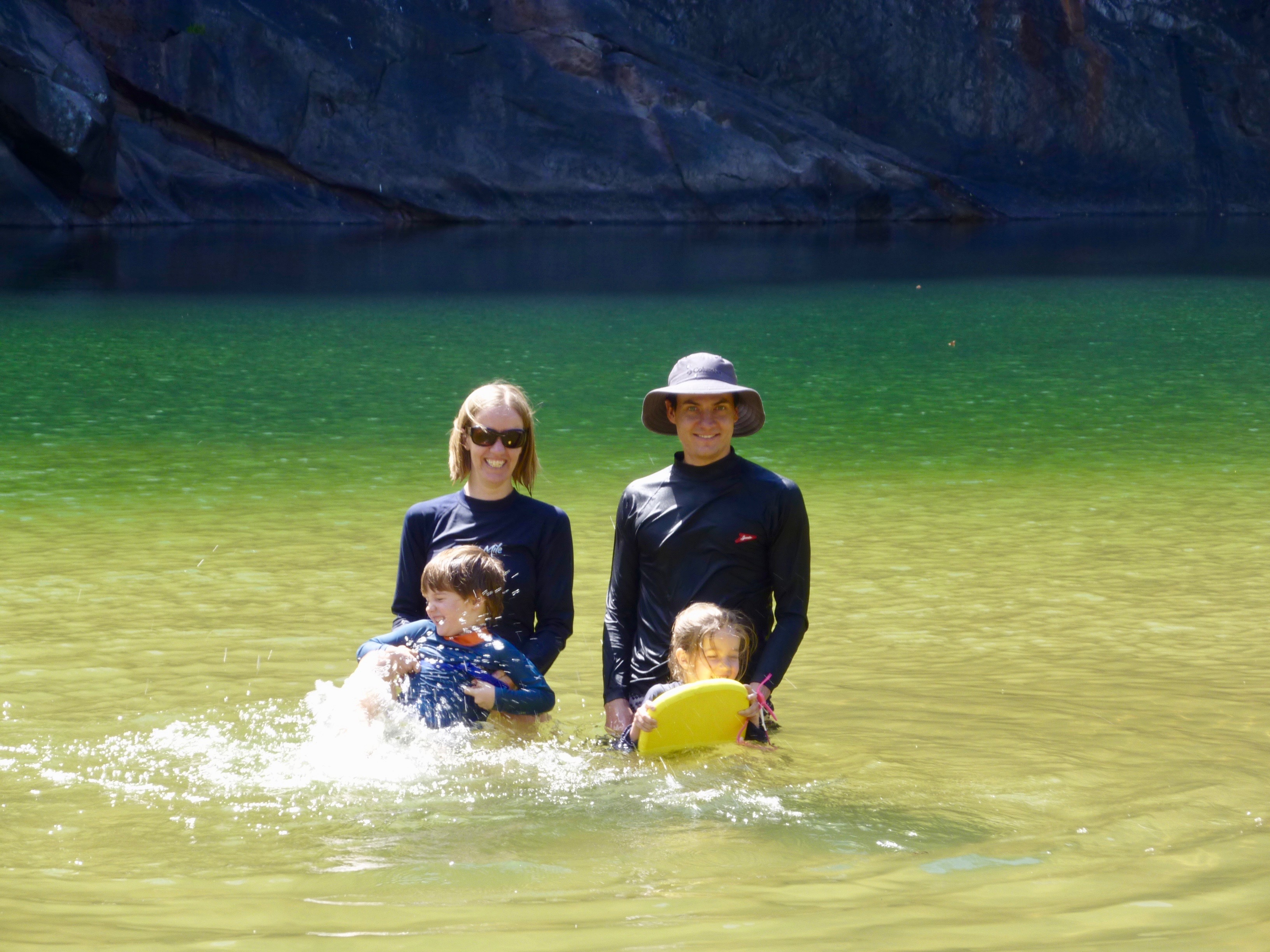 Greg: Well you know crocs have been known to move around even in the dry and you really can’t be too careful. Anyway we then ventrued up the hill, more of a steep scamble really. Amy and Oliver were eager to impress us after we framed the task as a rock climb rather than a walk. What great parenting. The top was gorgeous. It’s just a bit hard to take all this swimming in cystal clear plunge pools, swimming pools, hot springs (we’re getting to that bit). Photos below, cause I could write a thousand words… Please ignore the girl in the green top in the photos she was definitely staying in the frame of my pictures on purpose!