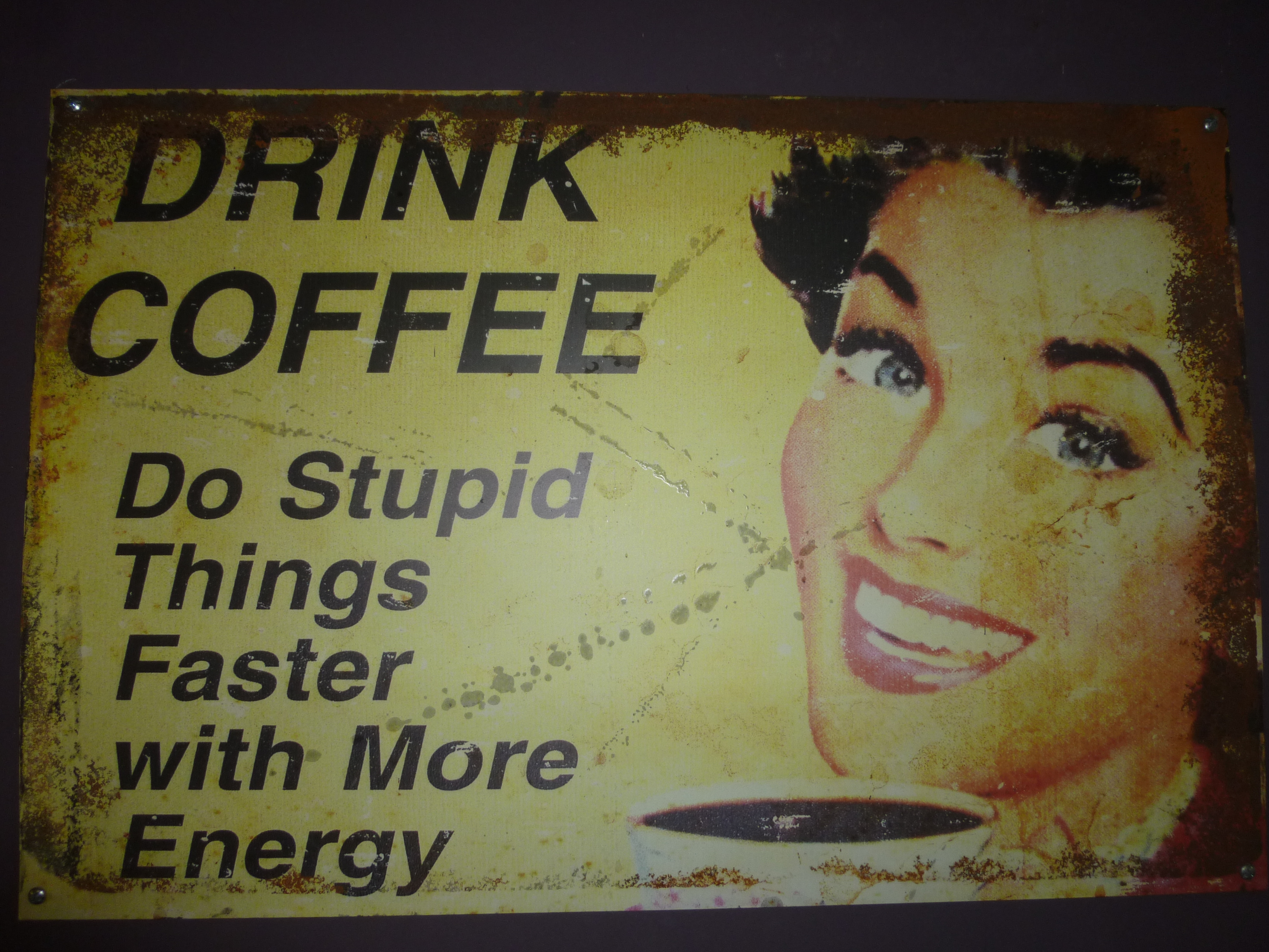 This time we chose our caravan park because it had a good website. There were quite a few to choose from and without any thing else to go on… It turned out well, the park has lovely shaded sites, which helps our slightly overworked fridge to actually operate as it should. And one night Grandma Jumbo took us all out to dinner… Our first Barramundi. Whilst dining in the open sided shed we noticed a vintage sign… ‘Drink coffee. Do stupid things faster with more energy’. It’s become a bit of a motto for Greg now.