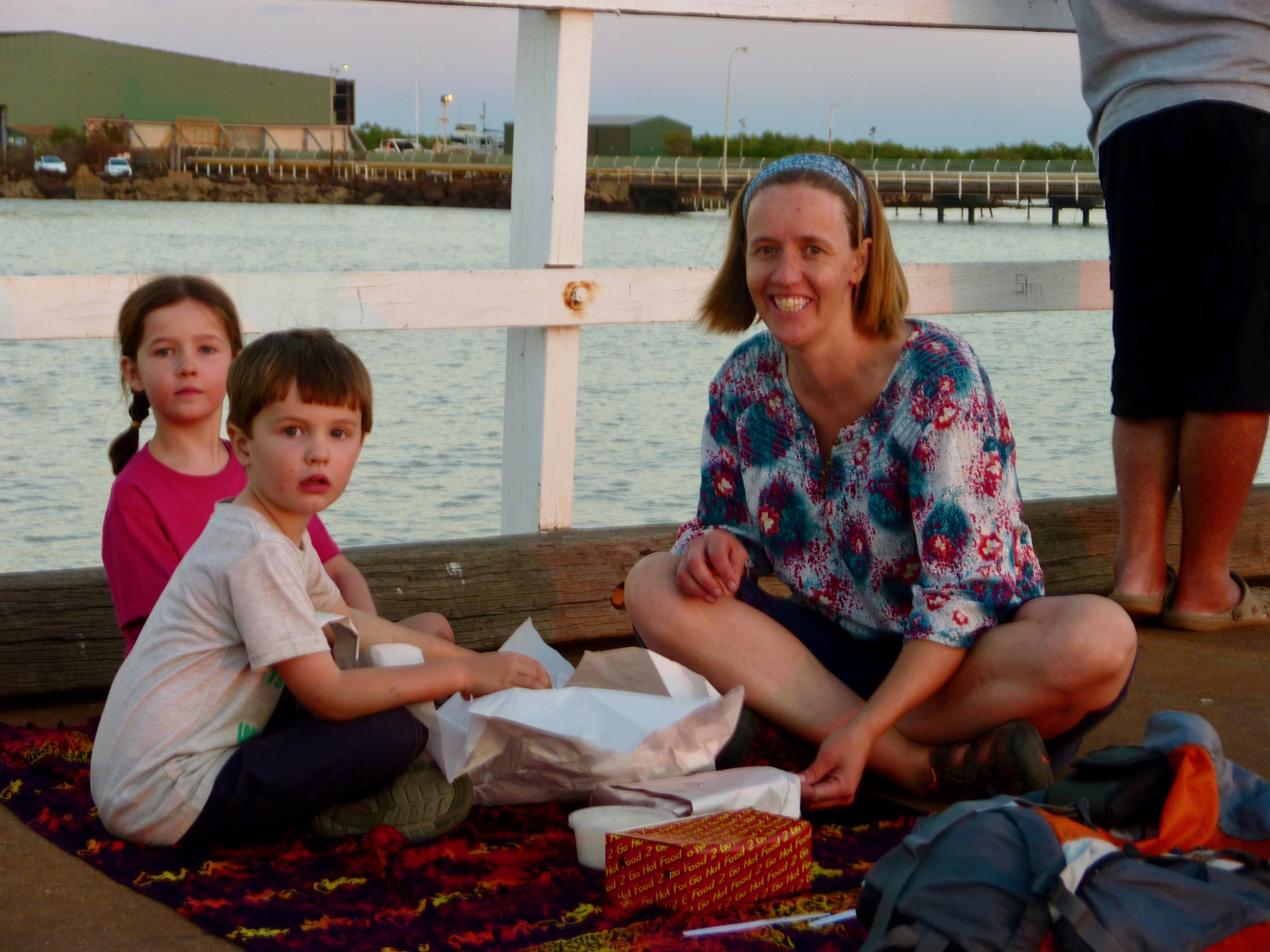 And now here we are in Derby. Bit of a lazy afternoon before we walked and the kids rode 2.5 km from the van park across the broad mud flats and down to the jetty for yet another spectacular sunset. We sat and watched while enjoying fish and chips, while everyone else was fishing! I’m pretty sure 9 out of 10 would also be purchasing their fish, but I could be wrong. We made it home in the dark, the kids surprising us with their endurance and good attitudes.