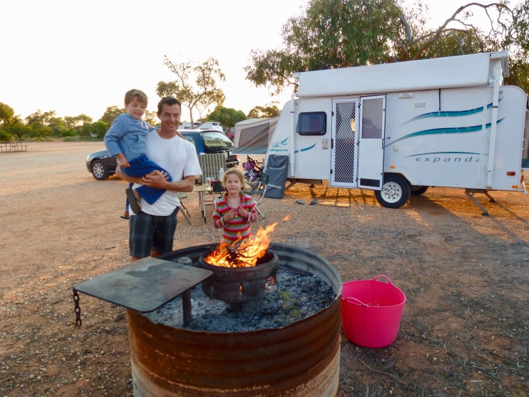 After stocking up, cleaning up and charging up, we said farewell to Jason, Kylie, Tommy and Summer. Tonight we’re at a free camp on our way to Kalbarri National Park wher we will meet up with Bruce and Irene again. I’m typing this sitting in front of the fire Greg and the kids built earlier. And it is cold enough to need a fire.