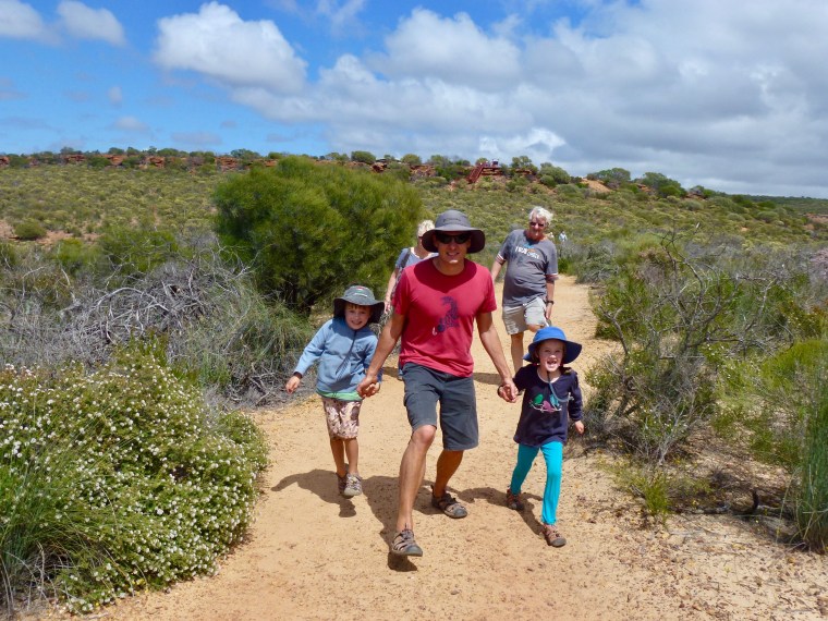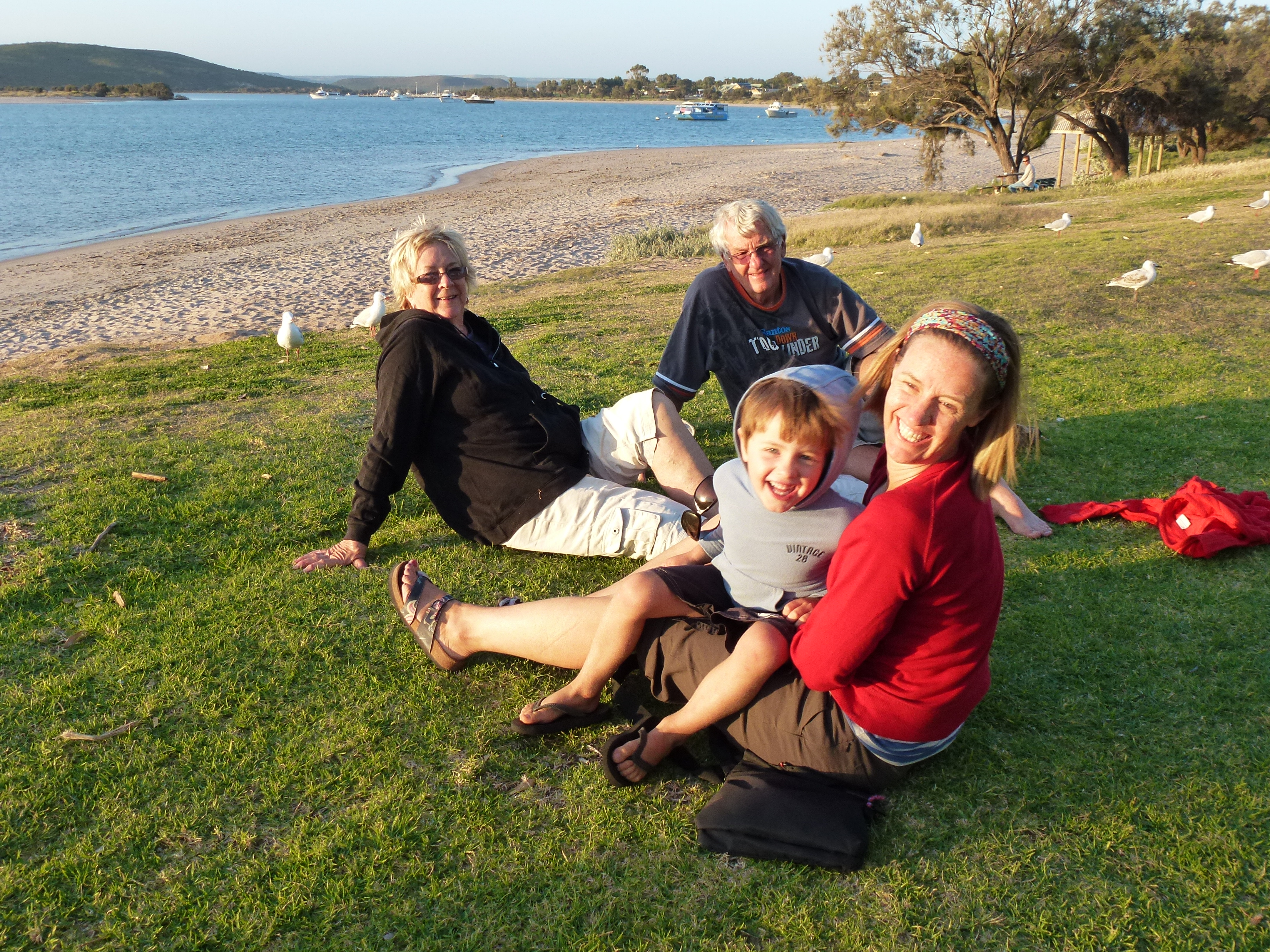 Right, now that I’ve got that off my chest… We of course continued to have a lovely old time. Just over half way in our travels and I still haven’t answered a few fundamental questions you put off resolving until you take long service leave, like what do I want to be when I grow up, but hey there is still 2 months to go. We did however visit a couple of cracker lookouts in the national park, including Nature’s Window and the coastal cliffs from Red Bluff. Grandpa Bruce also shouted us a visit to the Rainbow Jungle parrot sanctuary where I fell I love with a Blue McCaw and birds of every colour whipped past your head in a massive aviary. They would fly at great speed up and down the enclosure along a central corridor which Oliver named the bird highway. We also visited the wildflower centre (refer to previous entry for photos) and ate fish a chips on the lawns of Perth’s Batemans Bay.