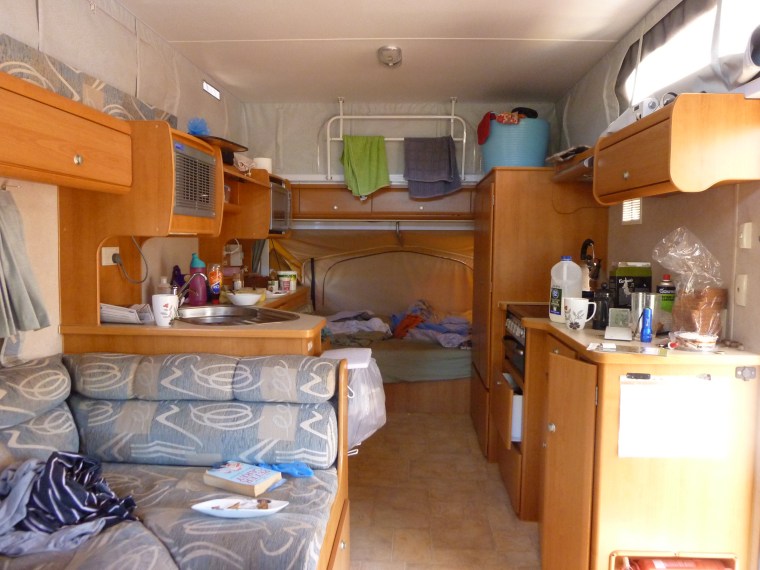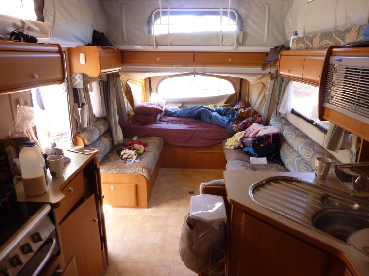 One definite up side of life in a caravan is that the house work only takes a fraction of the time. Unless of course you are me in which case you simply can’t abide a sandy/dirty floor. In that case you spend just as much time cleaning while traveling as at home, except that all of that time is dedicated to sweeping. Always with the sweeping! It’s like my own personal battle with entropy, the tendency of all things in the universe towards chaos. I must confess I begun to worry about myself a little when reflecting on how pleased I was to receive a dust buster for my birthday this year. Perhaps I’m not really qualified to comment appropriately on housekeeping on the road.