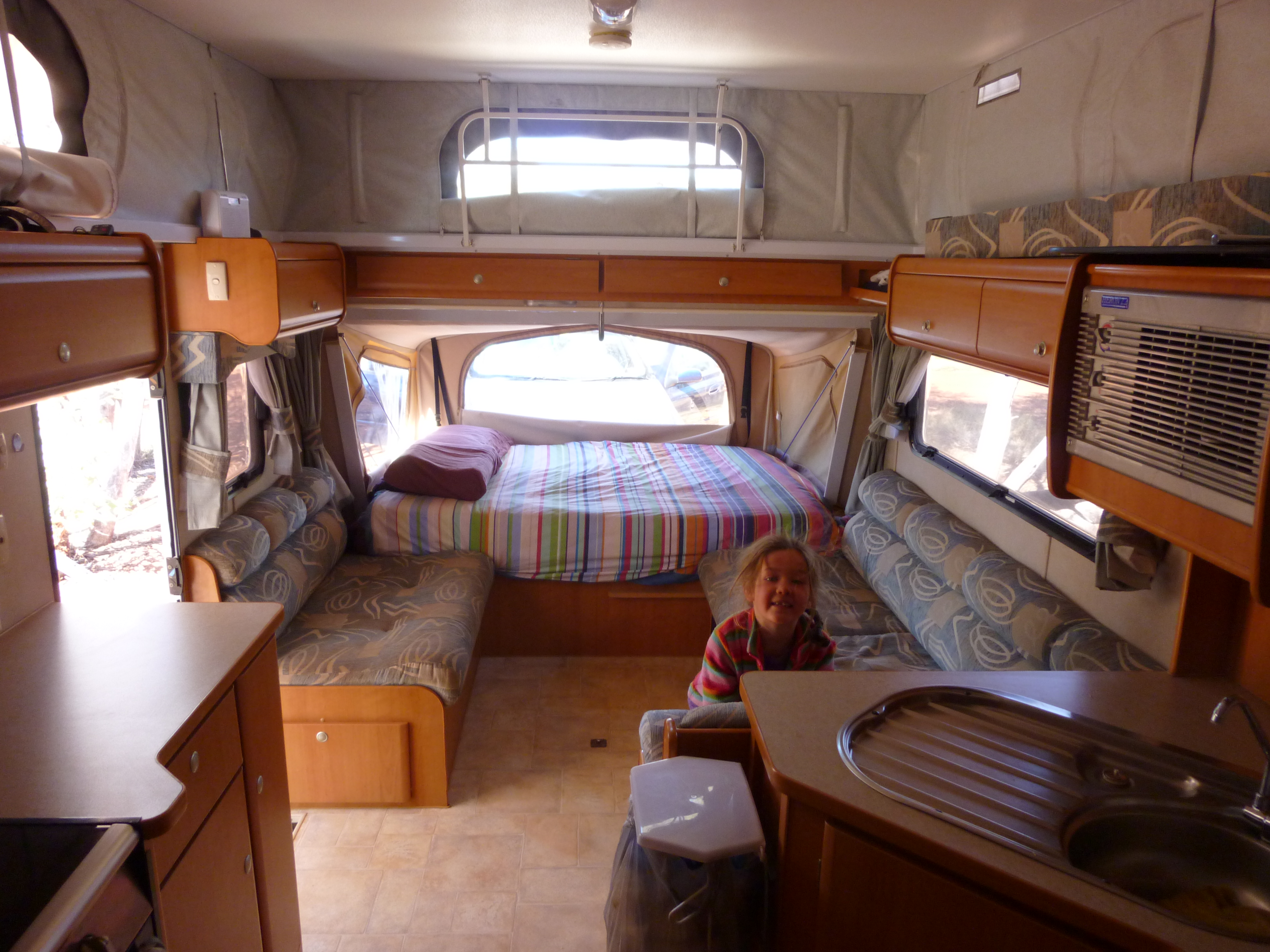 Life in a caravan is, unsurprisingly, unlike life at home. The van itself is, for example, about one sixteenth the floor space of our house. On the other hand travelling with the van gives you an endless backyard. For those of you that may be interested we thought we would document a few of our observations and experiences about life in a caravan.