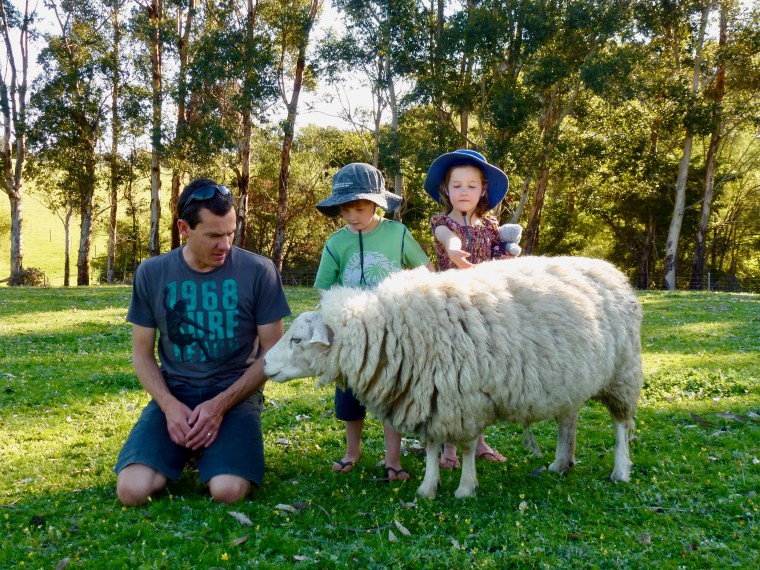 We managed to afford our little indulgences by lodging ourselves at a very affordable camp site on a working sheep station about 10 km south east of Margaret River itself. Twas a splendid property, where Amy and Oliver made their best friends of the entire trip with three girls from Mandurah, down for the school holidays. This meant that while we were not out looking at wineries, forests, lighthouses or chocolate factories they were virtually nowhere to be seen. The gang’s favourite hang outs included the cubby house tree, the aluminium can recycler (they would fish out the unsquashed cans and busily ensure they occupied less space) and the sheep paddock.