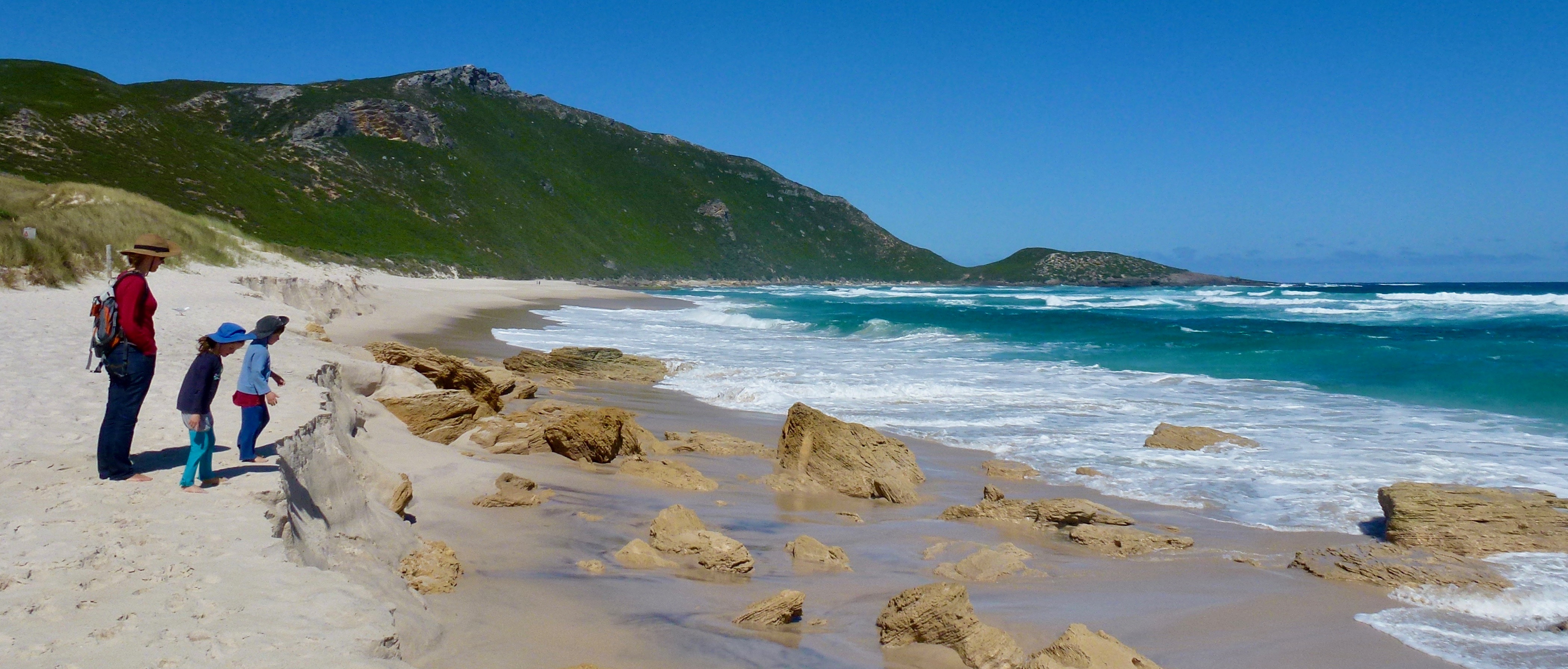 Our second day in town was Oliver’s much anticipated birthday. He’d been looking forward to it since Darwin and the excitement was almost tangible. We celebrated with blueberry pancakes following the early morning present ceremony. After which we built a few Lego airplanes before heading off to the famous Valley of the Giants Tree Top Walk, Oliver’s chosen birthday activity. This was followed by a trip to the conspicuously named Conspicuous Cliff beach where sand bank sliding and sand angels continued the birthday revelry. We topped it all off by going out for dinner at a Cafe in town whose hospitality made an ok meal a memorable night.