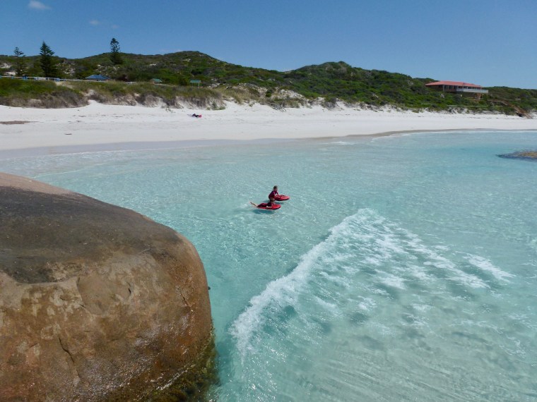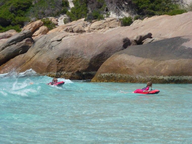 The beaches to the east and west of town are just stunning. The colour of the water rivalled that which I enjoyed so much at Coral Bay. The beaches were whiter though and the rocky granite headlands and dark green coastal shrubbery ensured that was where the similarities with Coral Bay ended. The water was also much cooler than Coral Bay, but not so cool as to keep Amy, Oliver and I out of it altogether. It was enough however to ensure Emma’s toes didn’t get wet. We spent a fantastic day splashing in and around the waters of Twilight beach which was apparently voted (by whom I do not know) Australia’s best beach in 2007. It wasn’t too hard to see why.