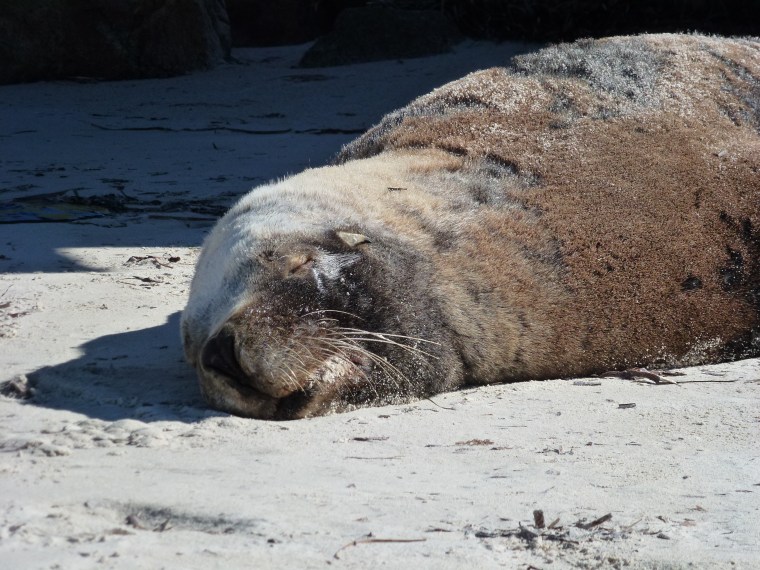Near to the centre of the town is the Tanker Jetty, home of Sammy the sea lion. Sammy is a seemingly lazy critter who spent pretty much all of our visit to town sunning himself on the sandy shore.