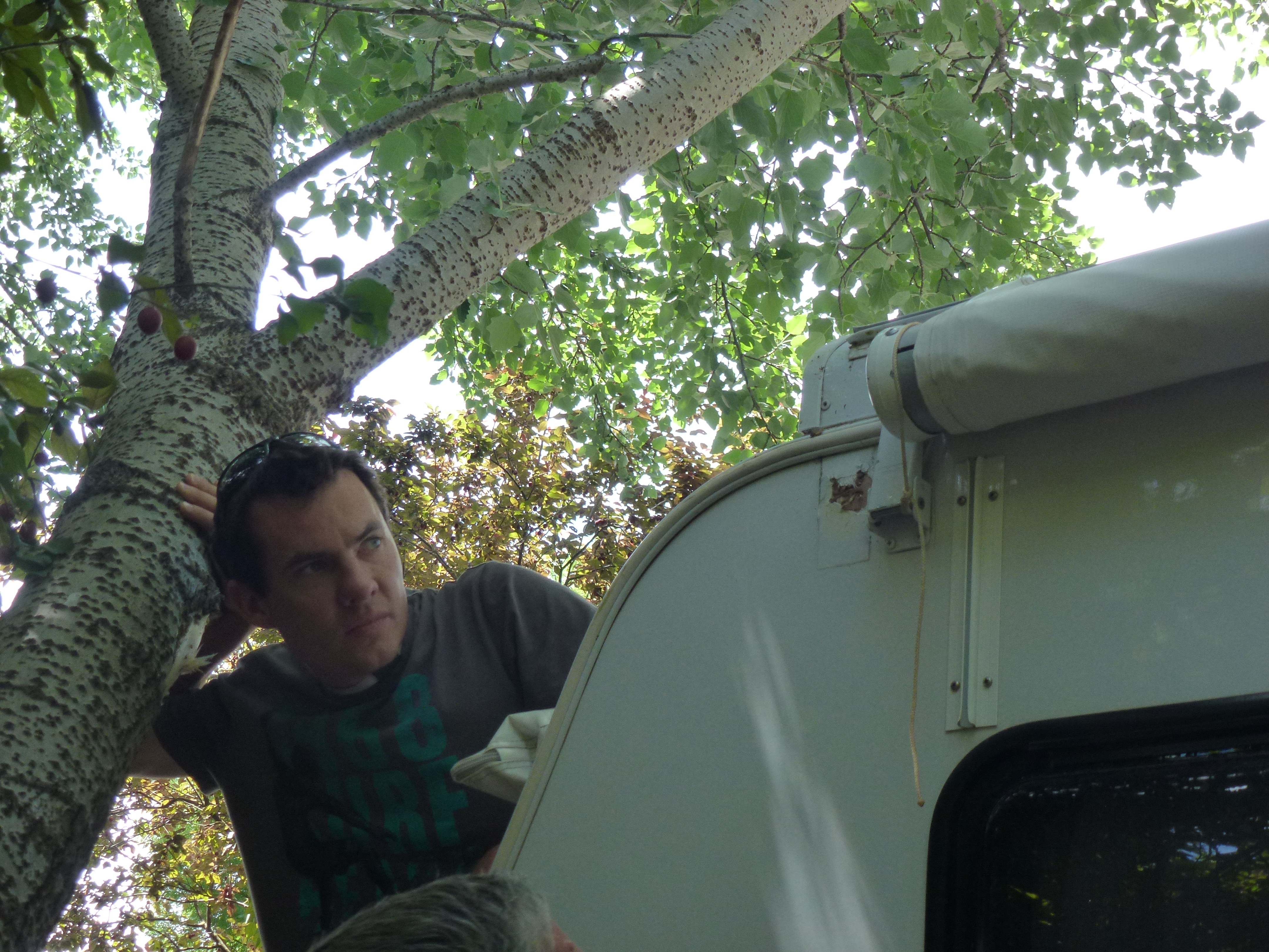 There are some sounds that just aren’t nice. Finger nails dragging down a chalk board is one. A shovel scraping over concrete (Emma’s favourite noise) is another. As a caravan pilot I do not like the sound of an awning trying to occupy the same space as a tree. I couldn’t describe just what this sound is like, suffice perhaps to say it is sufficiently different to the usual caravan noises to have made me very quickly realise I had done something stoopid.