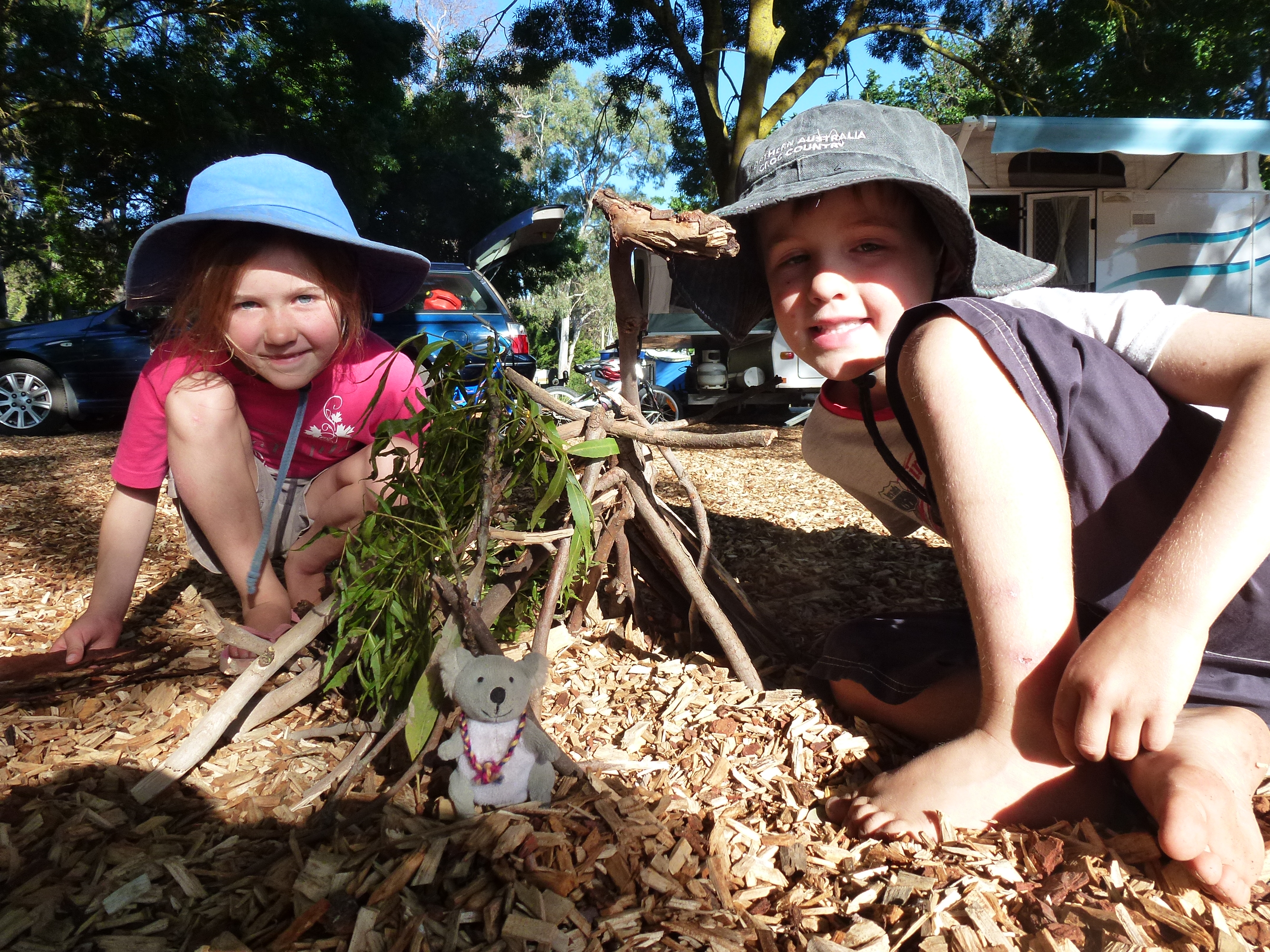 After collecting the beautifully repaired caravan (thank you wonderfully helpful people of the Gawler Caravan Centre) we spent that night back at Williamstown which was splendid in it’s simplicity. A balmy spring breeze blew over us as we camped beneath a canopy of claret ash. In front of us was a large green cricket pitch surrounded by tall trees. Amy and Oliver spent hours constructing a home for Koalee from sticks and bark or swinging around the steel fence running around the oval. All was right with our world once more.