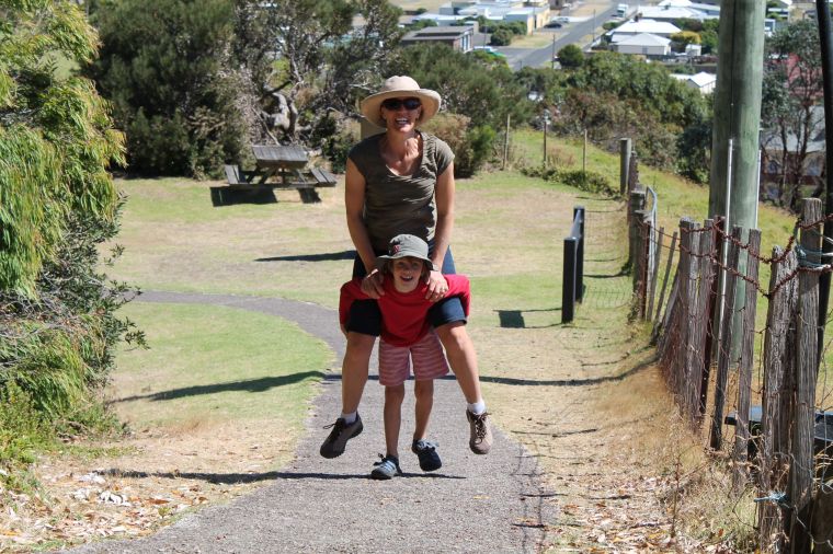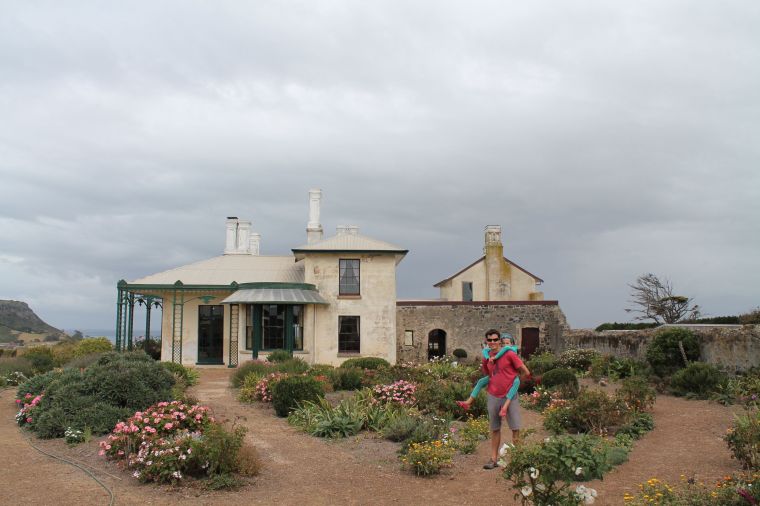 The interpretation signage goes on to say, ‘The Gum tree was dismissed as ugly by many of the early settlers and the forests were dubbed gloomy, monotonous and melancholy’ – I suspect that why they chopped so much of it down! In any case their investment of 600,000 pounds returned just 34,000 pounds and they ended up going broke. On the way out they did build a magnificent house and settlement, one I personally would be well pleased to occupy even today, with views out over Bass Straight and of the ‘big arsed rock’. It comprised many buildings, including a school in the attic of the church, where I took the opportunity to drill Amy and Oliver in the 2 times tables. They were thrilled.
