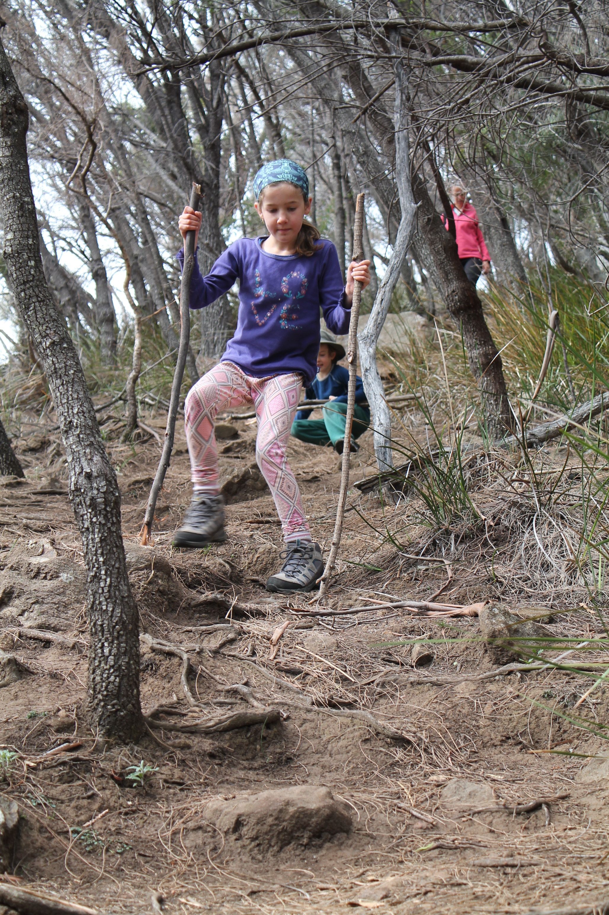 Of course too much chocolate damper has the potential to unduly expand the waistline so we all hiked up Fluted Cape for a bit of exercise. The walk description says it is unsuitable for children. Something about walking along the edge of cliffs 270 metres high with slippery causarina needles underfoot.