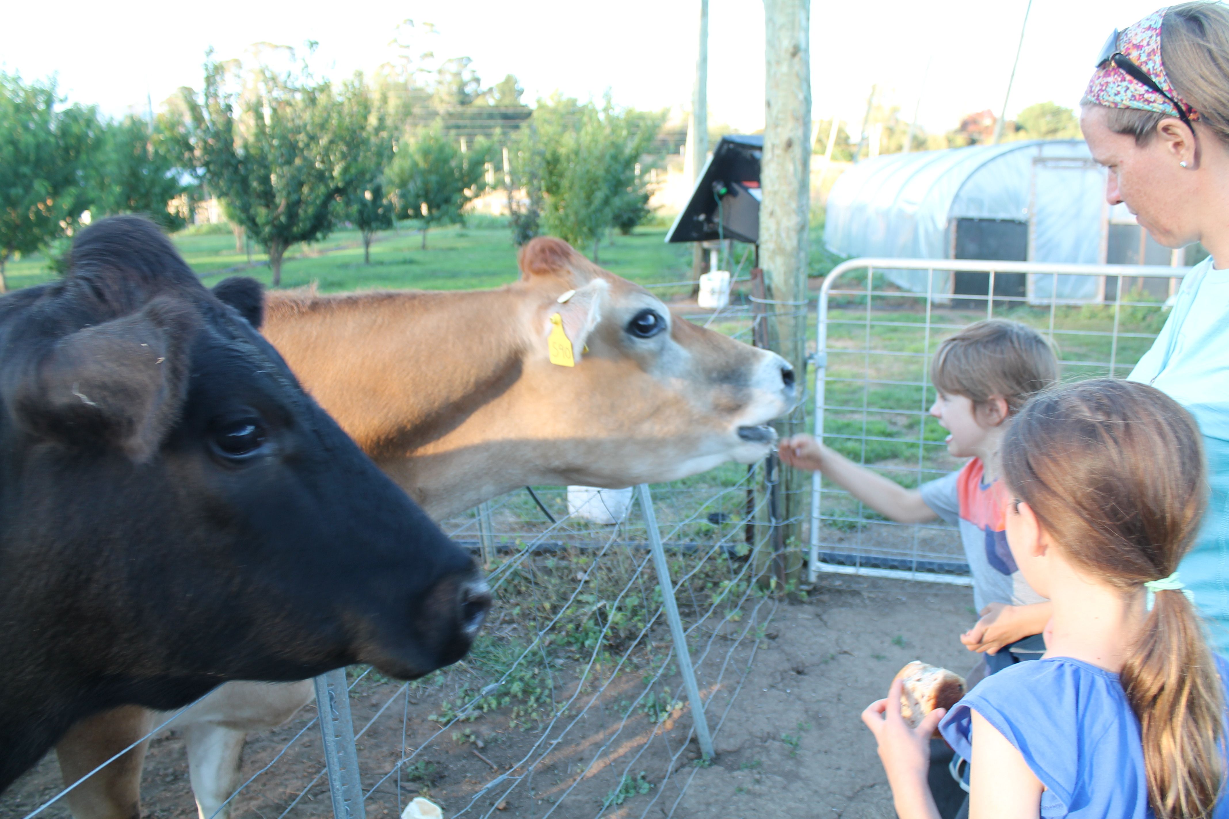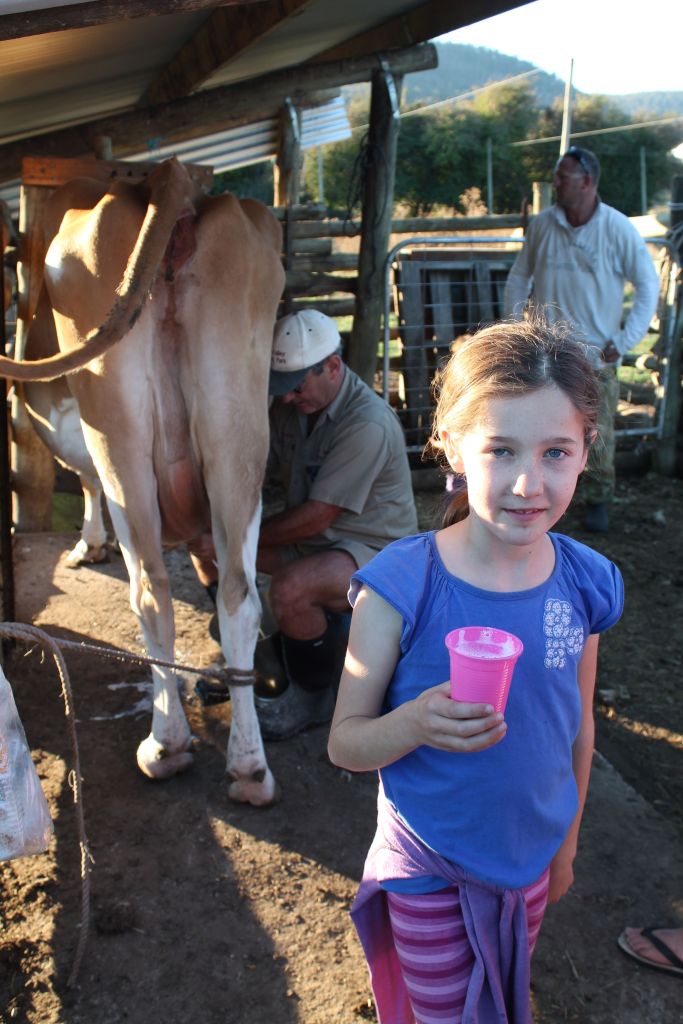 After salvaging our good name the farmer pulled a stack of plastic cups from the roof of the milking shed before filling them one at a time from dear old Mrytle and handing them around. Although hesitant at first Amy in the end loved it and was straight into it the next evening. She liked the ‘foamy bits’. Oliver tried it on the second night, he said he is more of a soy-milk kinda guy.