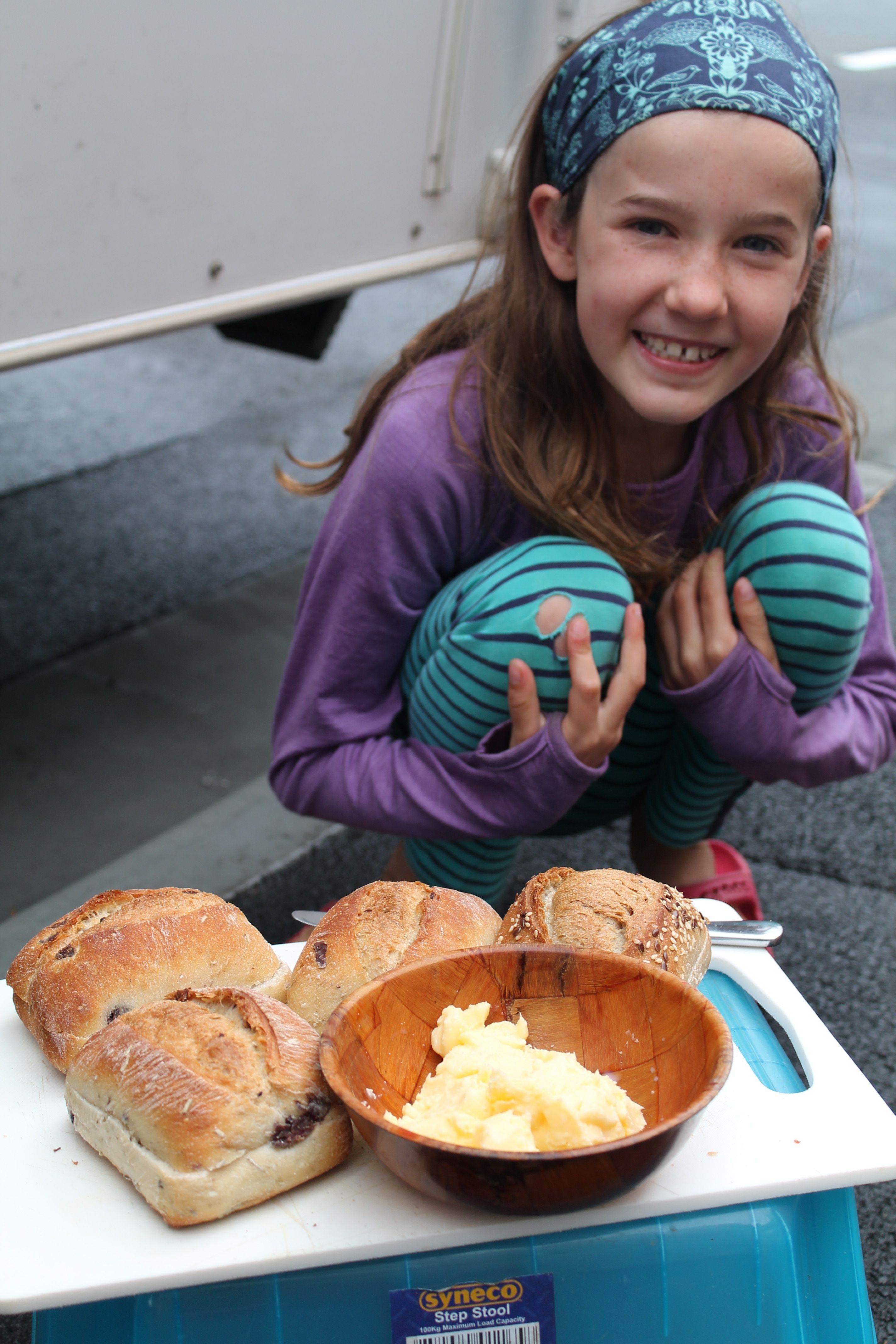 We arrived at noon. At 1pm Emma, Amy and Oliver started making butter in a jar (in the name of homeschooling) in the caravan, which we had parked out front of the garage in downtown Hobart. The problem with the car, a blockage in the radiator, was diagnosed by 2pm. We were all enjoying homemade butter on bread rolls by 3pm and a new radiator was installed by 4.45pm. All’s well that ends well, except for the bank account, which took an unexpected hit and the possibility of a cracked head gasket. Hmmmm.