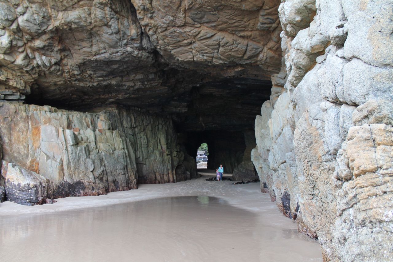 To the south of Port Arthur is the remarkable Remarkable Cave, although as Oliver pointed out it is more of a tunnel than a cave. We arrive at low tide and so through caution to the wind, lept the barricade and took a wander. The tunnel went for about 50 metres through the cliffs and opened out onto a pretty beach nestled at the base of towering cliffs, a very popular spot for surfers apparently.