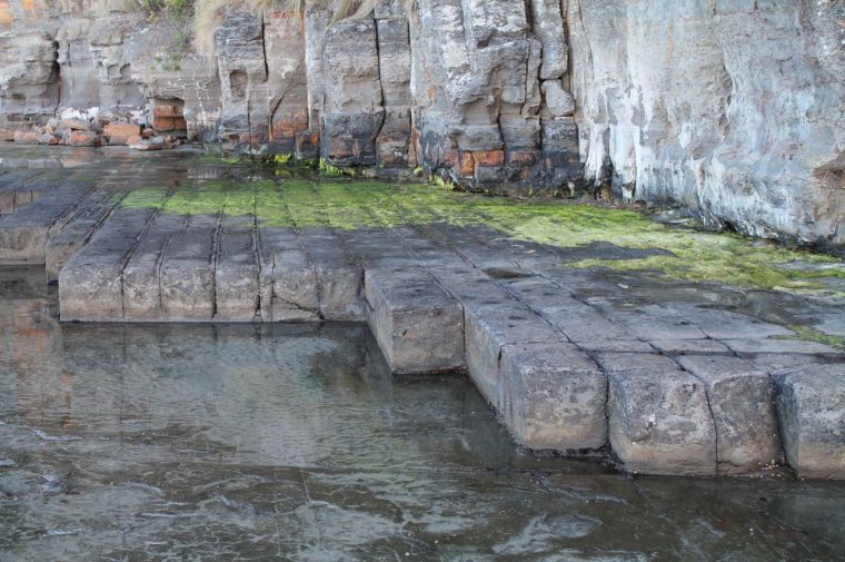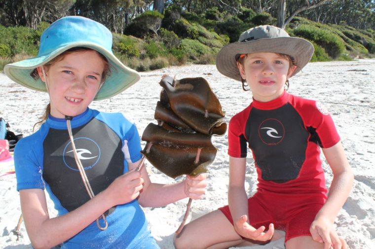 To the east of Port Arthur is the lovely Fortescue Bay. It has formed between what must have been a weak spot in the dolerite cliffs that run up and down the coast. Forest all around, white sands and cool clear water and no one there to enjoy it except us. Such a pity. I pulled on my running boots and ran the 10 kilometres out to Cape Huay, while Emma, Amy and Oliver honed their indigenous ‘kelp water carrier’ making skills.