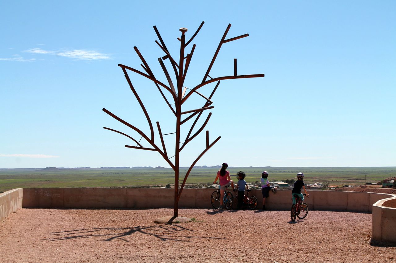 It’s 180 kilometers from Port Augusta to the tiny township of Woomera. On an on we rolled, soaking in the ever changing sky, bopping along to tunes or engrossed in a story. Roadhouses, those outback institutions, occasionally broke the journey but it’s a long way between drinks, 260 km between Glendambo and Spud’s Roadhouse.