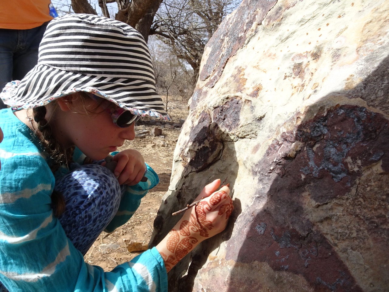 Today the Kukki’s make enough rupees during the tourist season, by showing people like us a few of the ancient rock arts sites, to keep fossicking the rest of the year. When we asked how much a day out with the Kukki’s would cost, Kukki Jnr’s reply was, ‘that’s up to you. I’ll show you around, we’ll have a good day, and then you can give me a few rupees if you like’. It is a tale of dedication, passion and a calling triumphing over self interest.