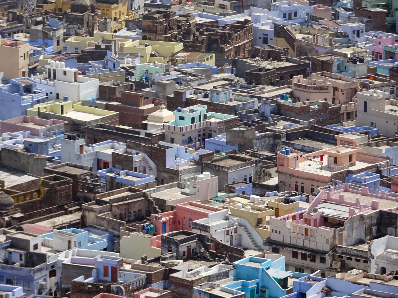 This however has not been our experience. The sky has almost invariably been blue and apart from the odd rumble, our stomachs have been fine. The place is gritty and dirty and ramshackle and crumbling, but there is beauty in the ruins. I found it in Bundi, a town of colourful walls settled at the foot of another imposing old palace and fort.