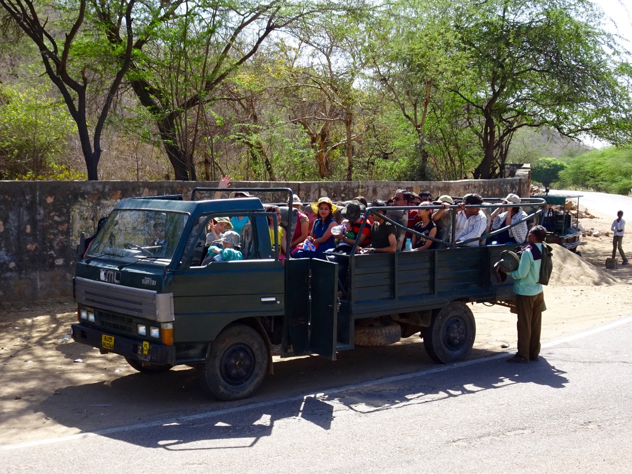 When we reached a cool, wet, grassy, green gorge in the dusty, rocky hills the canter halted and the guide did his best to keep everyone quiet while we sat and waited. I tried not to be disappointed. I knew it probably wasn’t going to happen. Alas, no tigers for us. The engine started up and we did a u-turn to head for home.