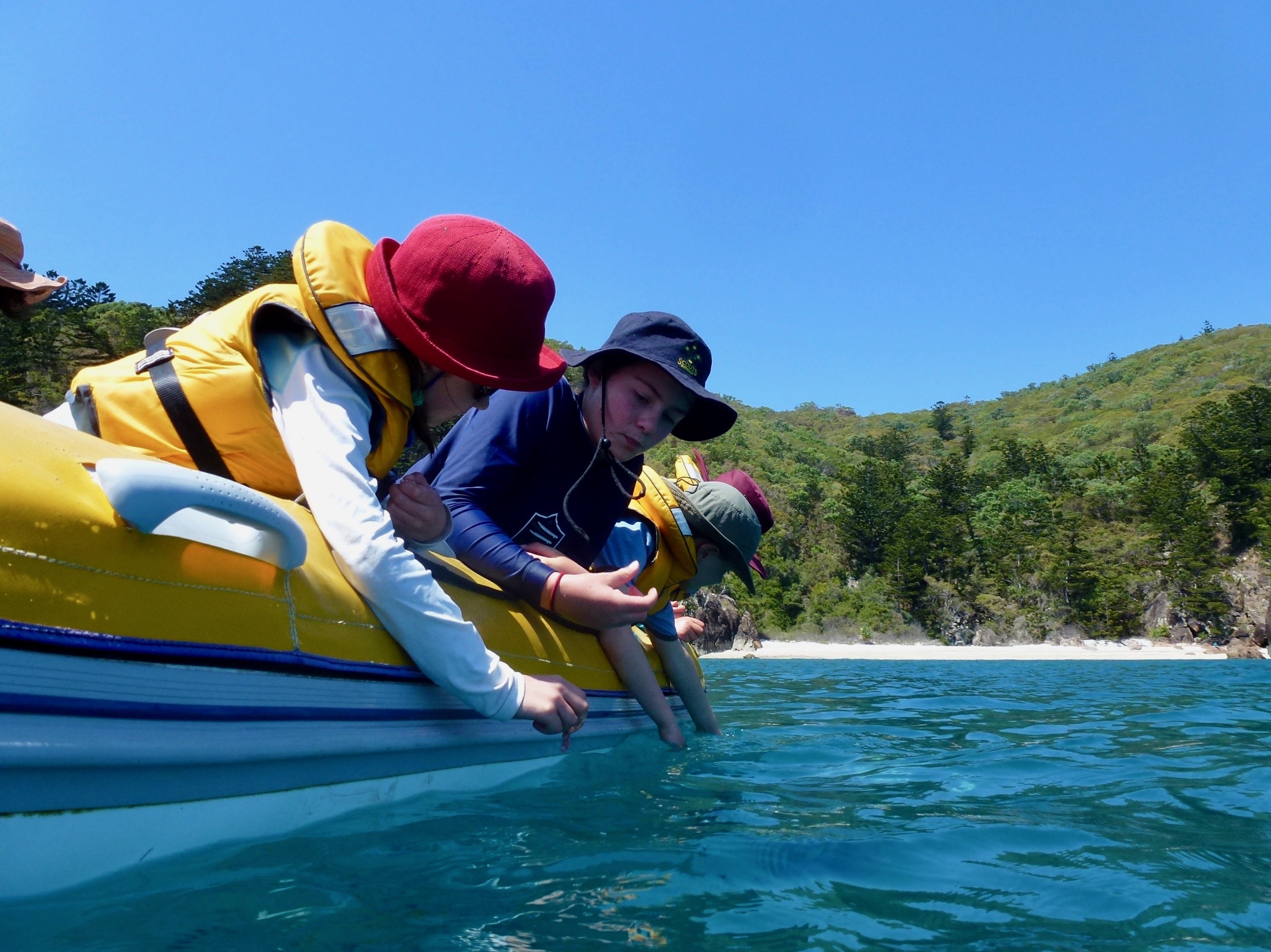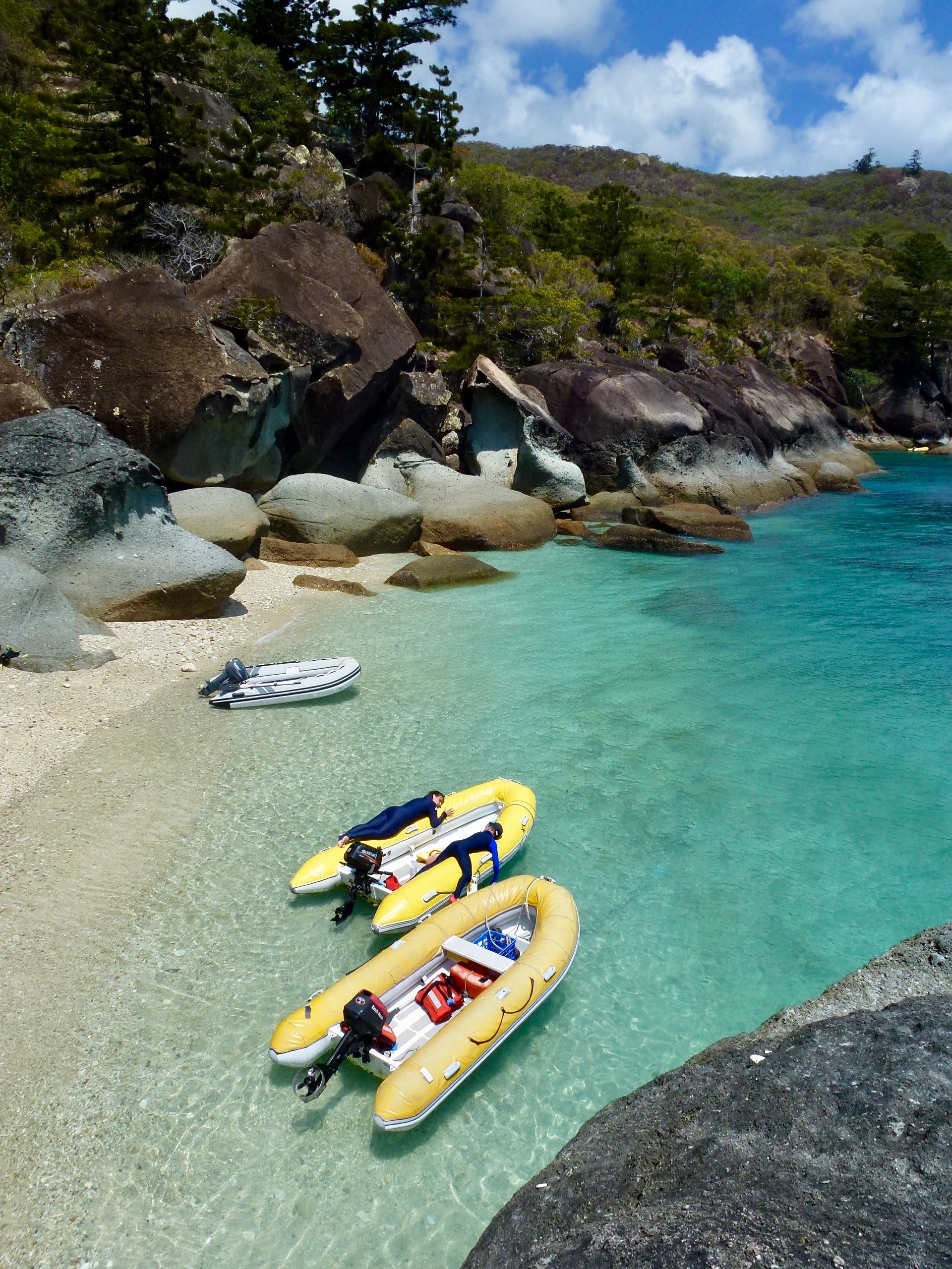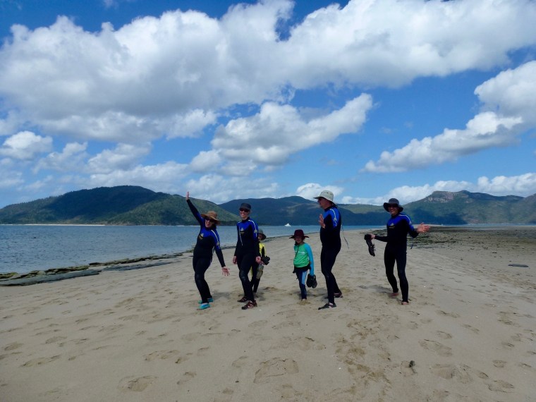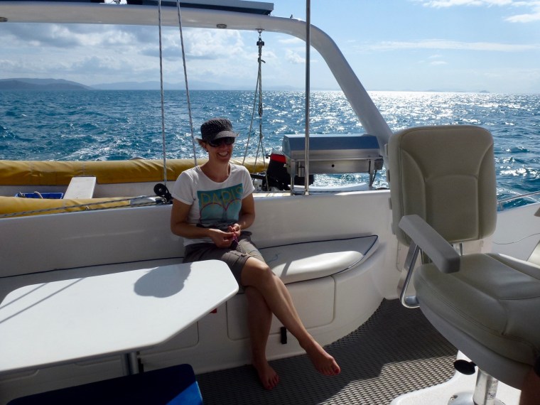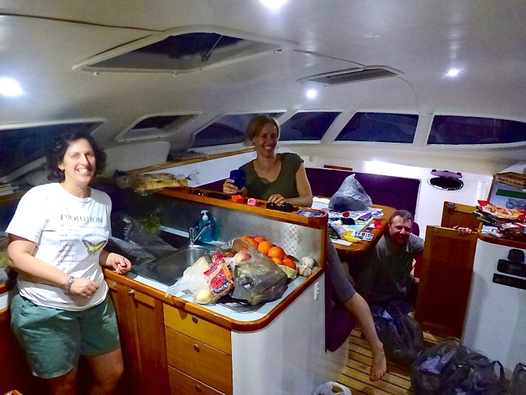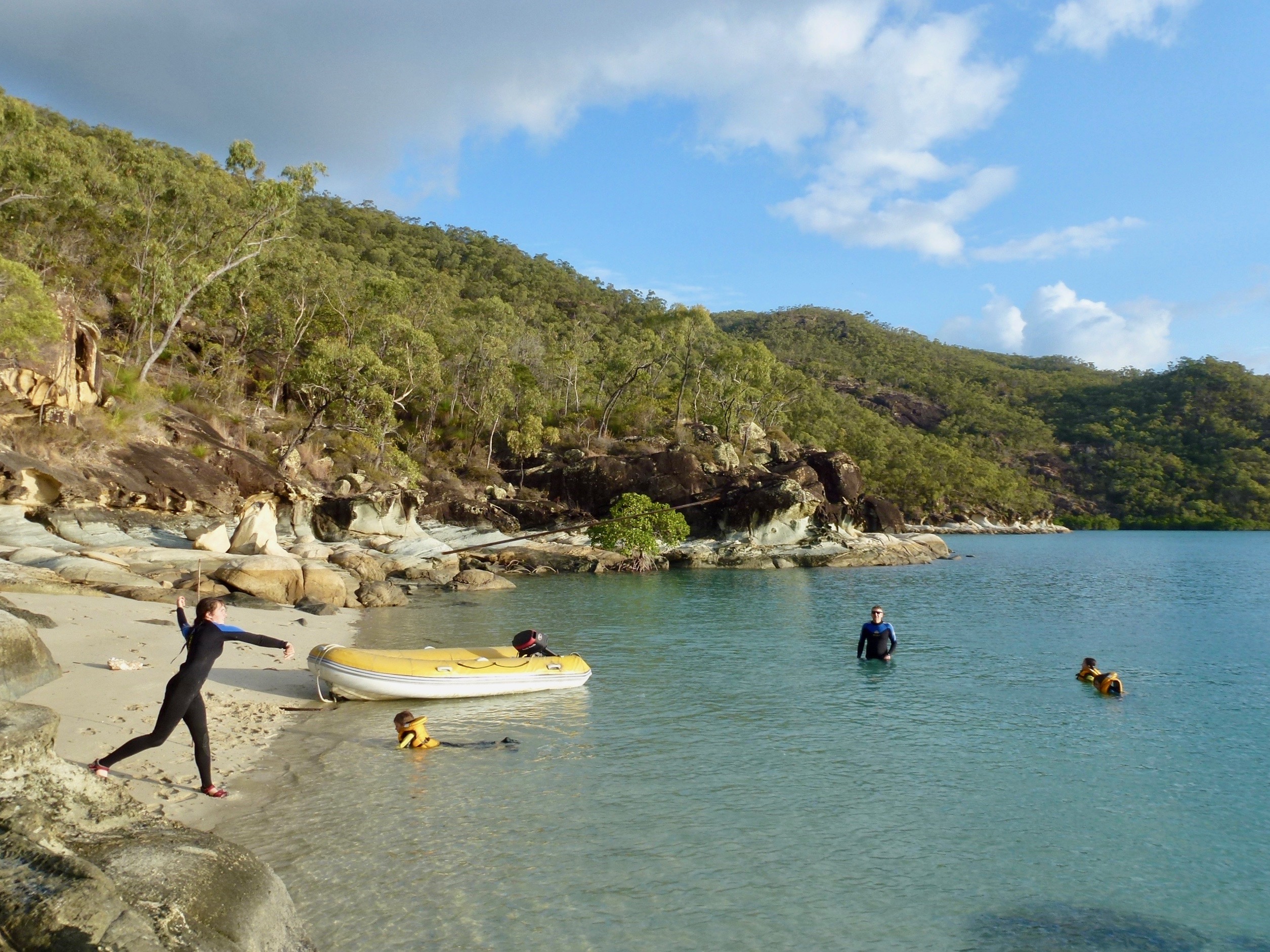 Razzle Dazzle was rising and falling under our feet. Dana, Amy, Evie and Oliver were surfing the swell. Khia was right where she wanted to be – at the helm. Luncheon Bay, another beautiful snorkelling spot, was round the corner. We dreamt of keeping Razzle Dazzle and pondered how we got so lucky.