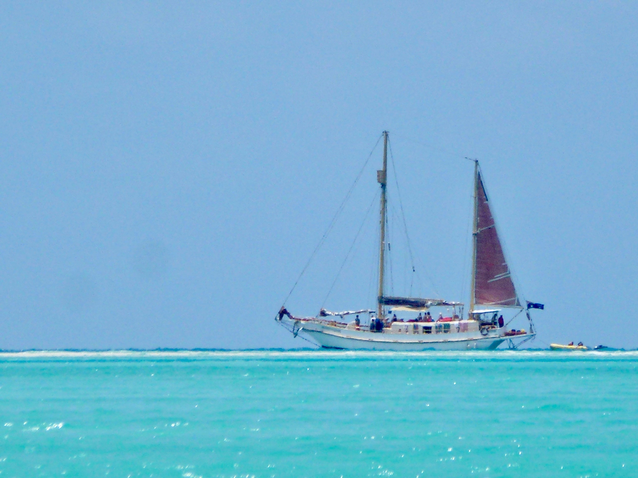 We pulled our heads up from the wonders of the coral at the sound of a propeller. ‘Time to go’ the young fellow on board called. ‘Think we’ll stay’, we replied. ‘Thats our yacht over there.’